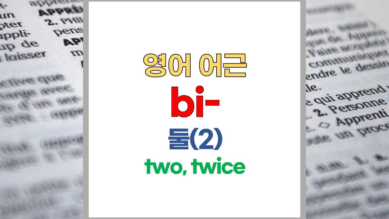 - [Latin] bi- - [=bi] twice, double ([=bi] 두 번[두 배], 갑절)