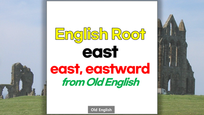 | 영어 어근 east는 고대 영어(Old English) east, eastan, east-에서 유래했습니다. 동쪽, east라는 기본적인 의미를 갖고 있습니다. |