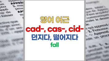 | 영어 어근 cad-, cas-, cid-는 라틴어(Latin) cadere, casus에서 유래했습니다. 던지다, 떨어지다, fall이라는 기본적인 의미를 갖고 있습니다. |