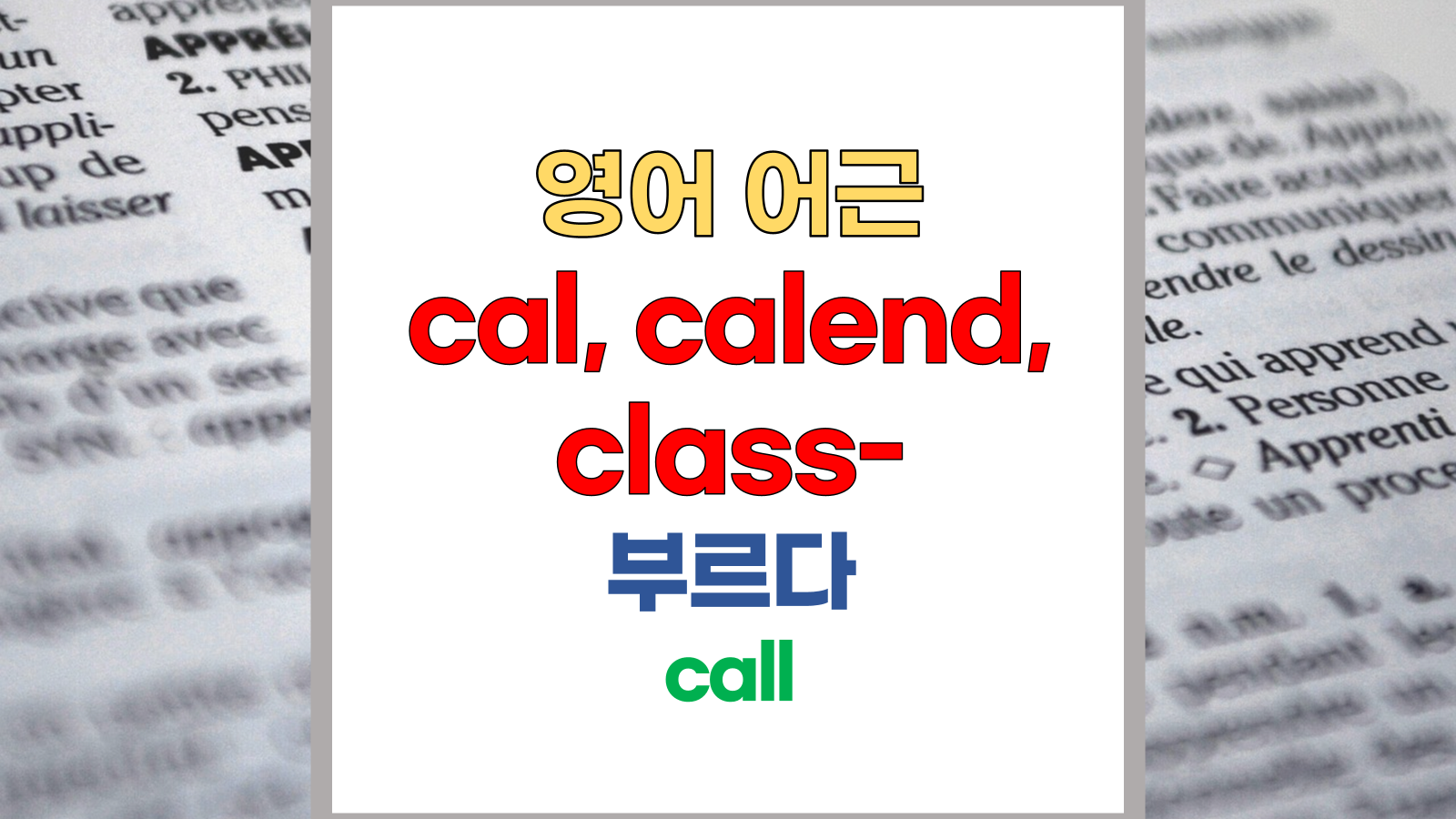 | 영어 어근 cal-, calend-, class-는 라틴어(Latin) calare, classis, calendarium에서 유래했습니다. 부르다, call이라는 기본적인 의미를 갖고 있습니다. |