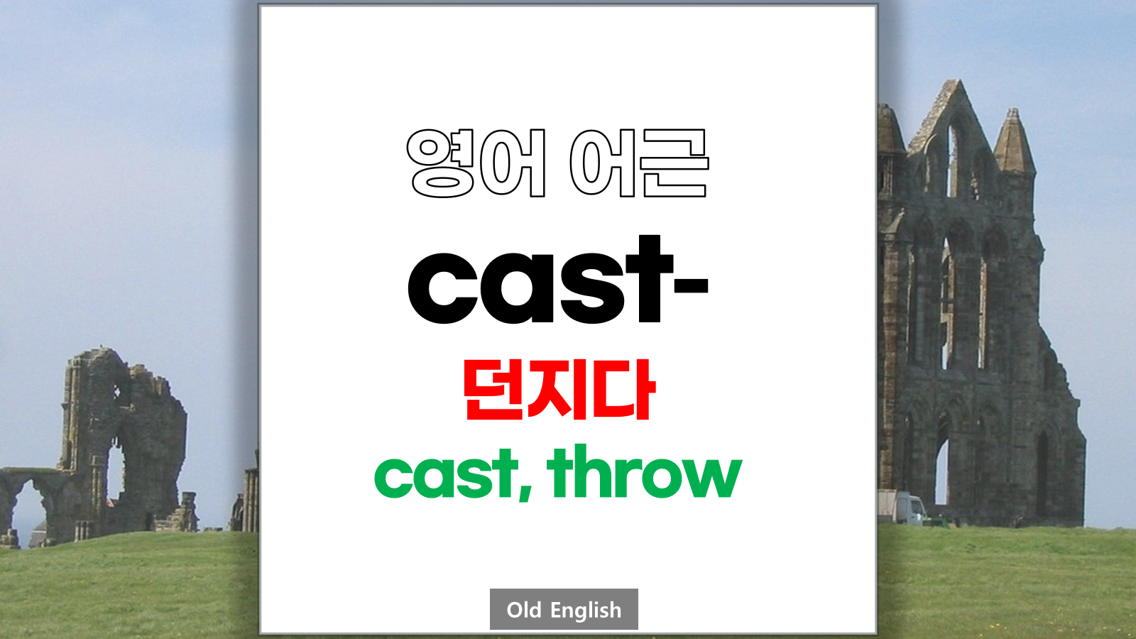 | 영어 어근 cast는 고대 노르웨이말(Old Norse) kasta에서 유래했습니다. 던지다, cast, throw라는 기본적인 의미를 갖고 있습니다. |